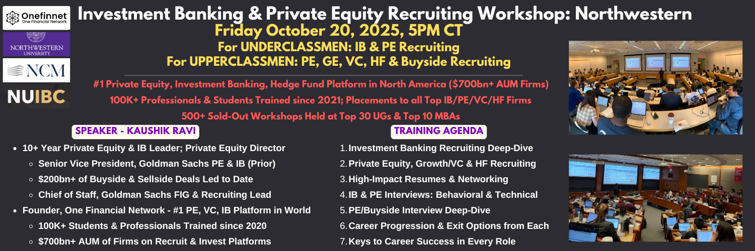 Join this exclusive Investment Banking & Private Equity Recruiting Workshop, led by Kaushik Ravi