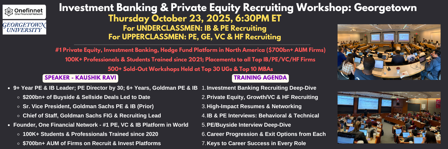 Join this exclusive Investment Banking & Private Equity Recruiting Workshop, led by Kaushik Ravi