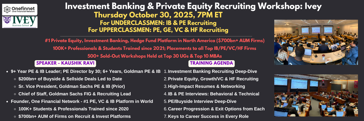 Join this exclusive Investment Banking & Private Equity Recruiting Workshop, led by Kaushik Ravi