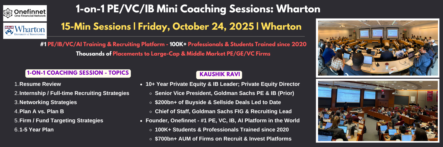 Onefinnet @ Wharton MBA: 1-on-1 PE/VC/IB Mini Coaching Sessions