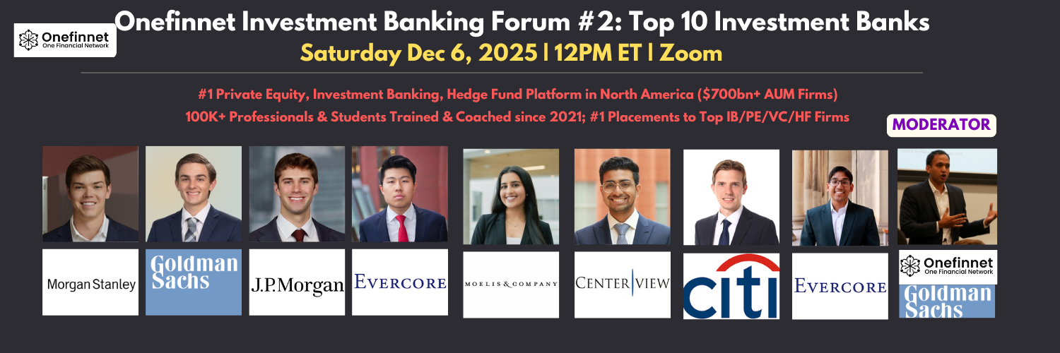 Recruiting for (or entering) Investment Banking / High Finance? Join the next marquee event of the season — the Onefinnet Investment Banking Recruiting Training Forum #2