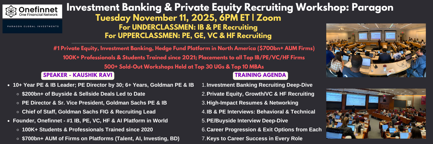 Join this exclusive Investment Banking & Private Equity Recruiting Workshop