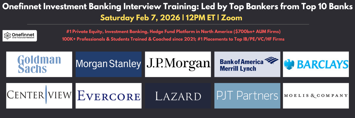 Join one of the most highly anticipated IB events of the year - the Onefinnet Investment Banking Interview & Superday Training Forum on Sunday January 25 at 12PM ET on Zoom - led by Inv...