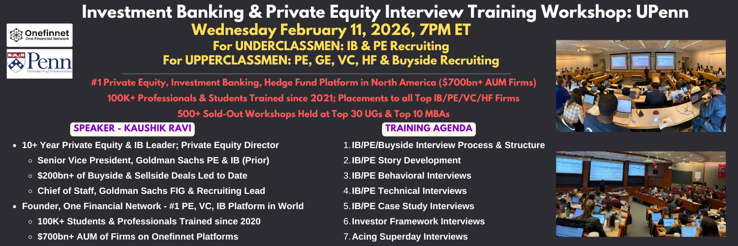 Onefinnet is back at UPenn for an exclusive Investment Banking & Private Equity Interview & Superday Training Workshop