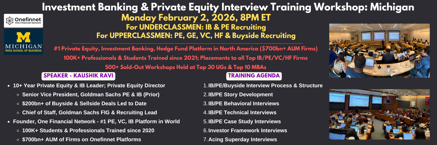 Onefinnet is back at Michigan for an exclusive Investment Banking & Private Equity Interview & Superday Training Workshop