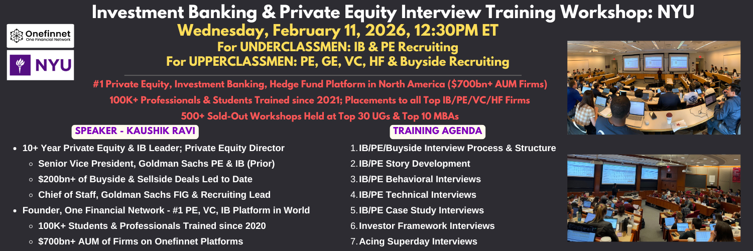Onefinnet is back at NYU for an exclusive Investment Banking & Private Equity Interview & Superday Training Workshop