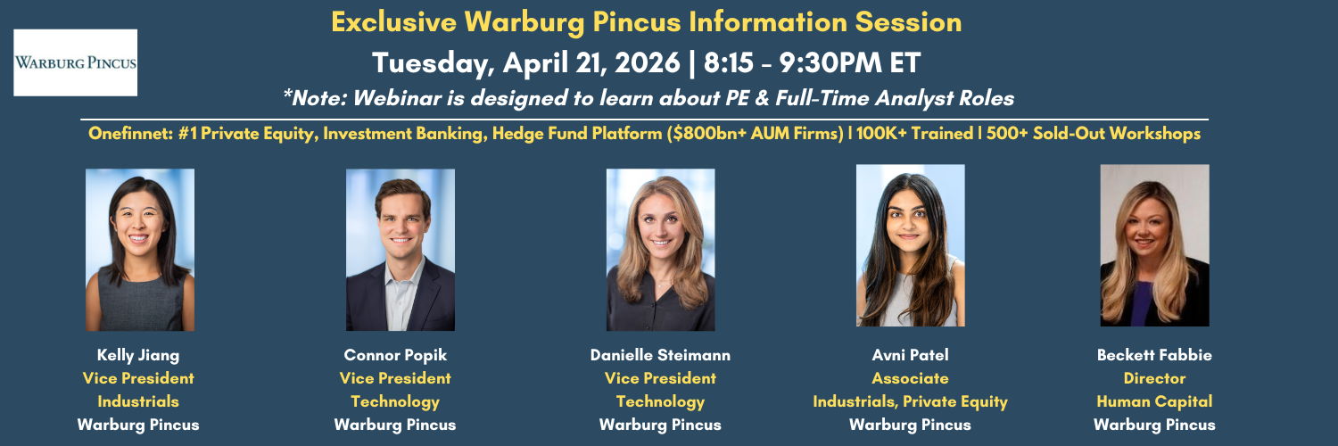 Join an exclusive Private Equity Information Session with Warburg Pincus, one of the leading global private equity firms with $100B+ in AUM, 215+ active portfolio ...
