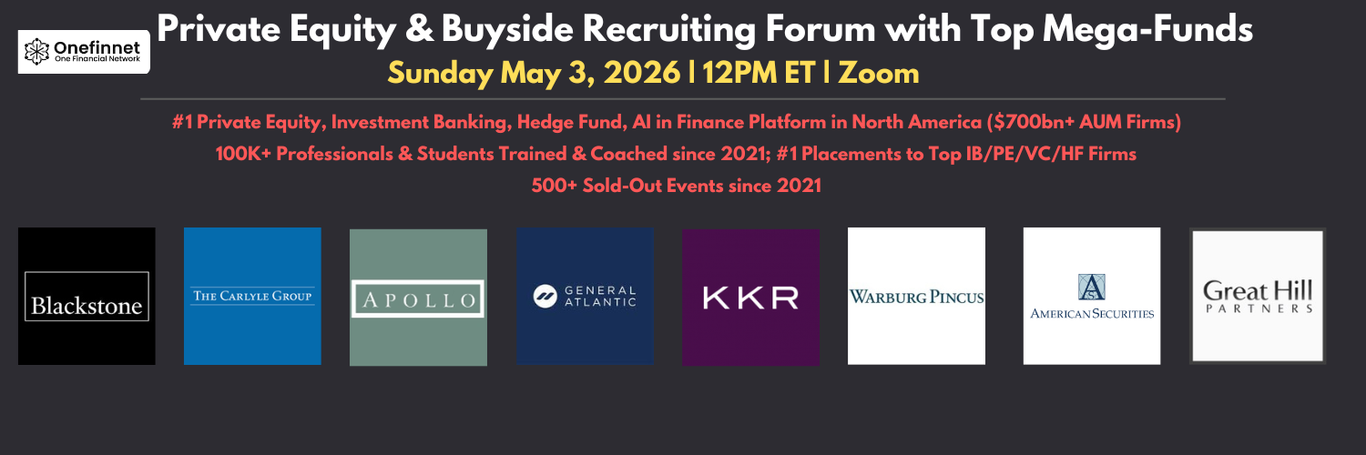 Join the next highly anticipated Private Equity / Buyside event on Onefinnet - Private Equity & Buyside Recruiting Forum on Zoom - including the Top Mega-Fund PE Firms ...